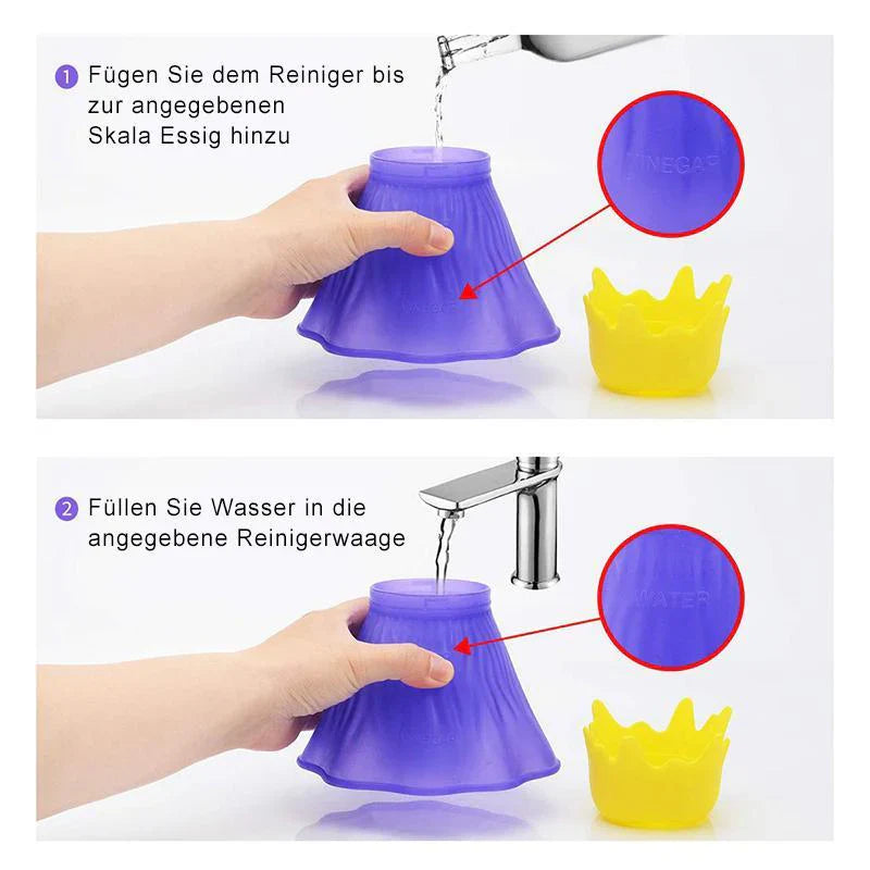 Heeft u genoeg van aangebrande etensresten en vervelend schrobben in uw magnetron? De damp magnetronreiniger in vulkaanontwerp maakt een einde aan hardnekkig vuil - met alleen water en azijn! Vul hem gewoon, plaats hem in de magnetron en kijk hoe de stoom het vuil oplost. Een krachtige maar zachte manier voor een sprankelend schone hygiëne! 💨