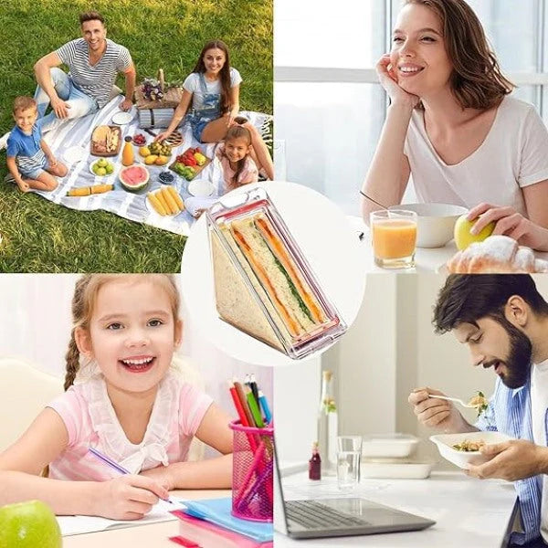 Geen slappe, zompige snacks meer! De driehoekige sandwichdoos houdt je broodje vers, smakelijk en beschermd, of je nu naar school, kantoor of een picknick gaat. Dankzij het stevige ontwerp en de veilige sluiting blijft alles netjes en schoon – zonder aluminiumfolie of plastic zakjes!