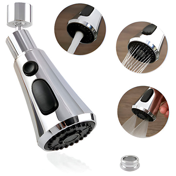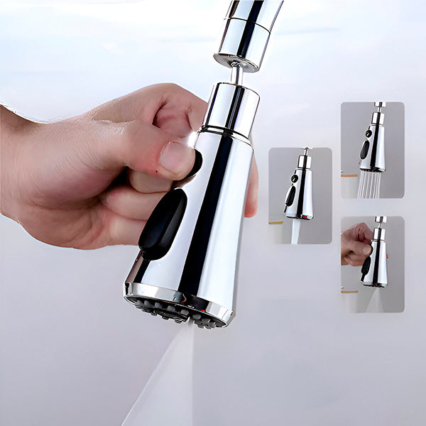 Maak afwassen en schoonmaken gemakkelijker dan ooit tevoren! Het flexibele kraanopzetstuk vergroot het bereik van je kraan en biedt drie verschillende sproeistanden die zich perfect aan je behoeften aanpassen. Met één druk op de knop kun je schakelen tussen normale straal, sproeistraal en hogedrukstand - ideaal voor zacht spoelen of krachtig reinigen.