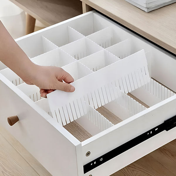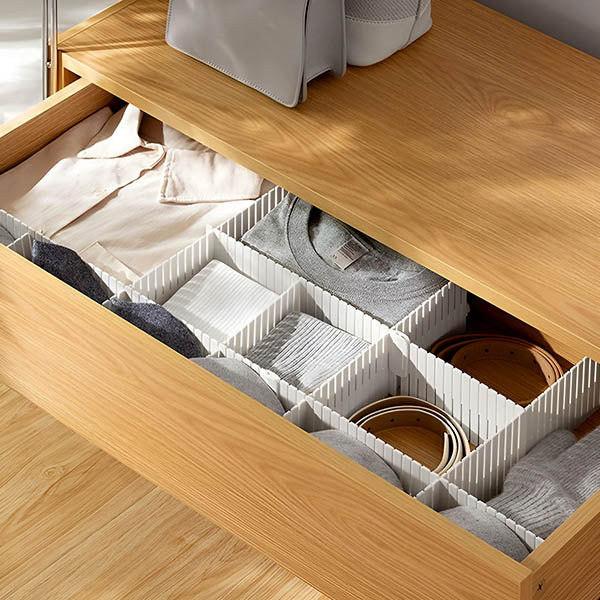 ✅ Aanpasbaar - De variabele verdelers kunnen flexibel in lengte en indeling worden aangepast, zodat ze perfect in elke lade passen.