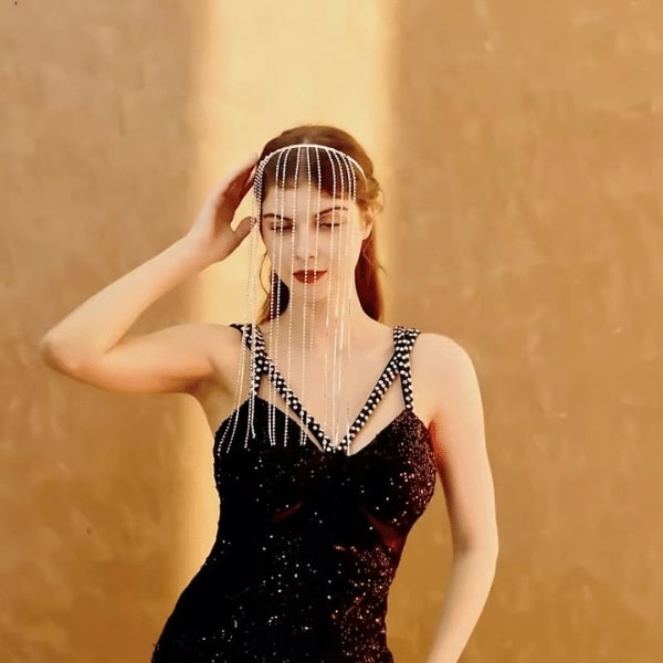 Geef je stijl een magische sprankeling met de haarjuwelen met fonkelende kristallen! De lange, glinsterende lokken creëren een elegante, opvallende look die perfect is voor feesten, bruiloften of speciale gelegenheden. Met zijn comfortabele hoofdbandontwerp, past het goed en kan het moeiteloos worden geïntegreerd in elk kapsel - voor een mooie verschijning met sprankelende elegantie!