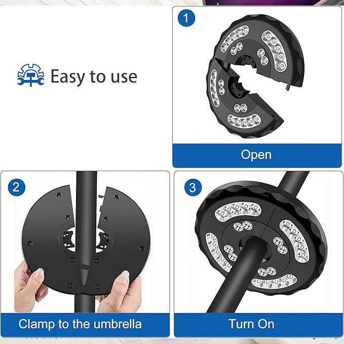 Conventionele buitenlampen verlichten het gebied onder de parasol vaak niet, waardoor tafels en zithoeken in het donker staan. Met deze innovatieve parasolverlichting behoort dit probleem tot het verleden! De LED-lampen zorgen voor gelijkmatige, niet-verblindende verlichting zodat je 's avonds buiten kunt genieten - of je nu eet, leest of gezellig zit te kletsen.