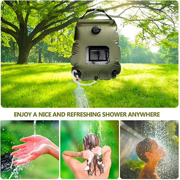 - 💧 Grote capaciteit: 20 liter capaciteit voor meerdere verfrissende douches onderweg.