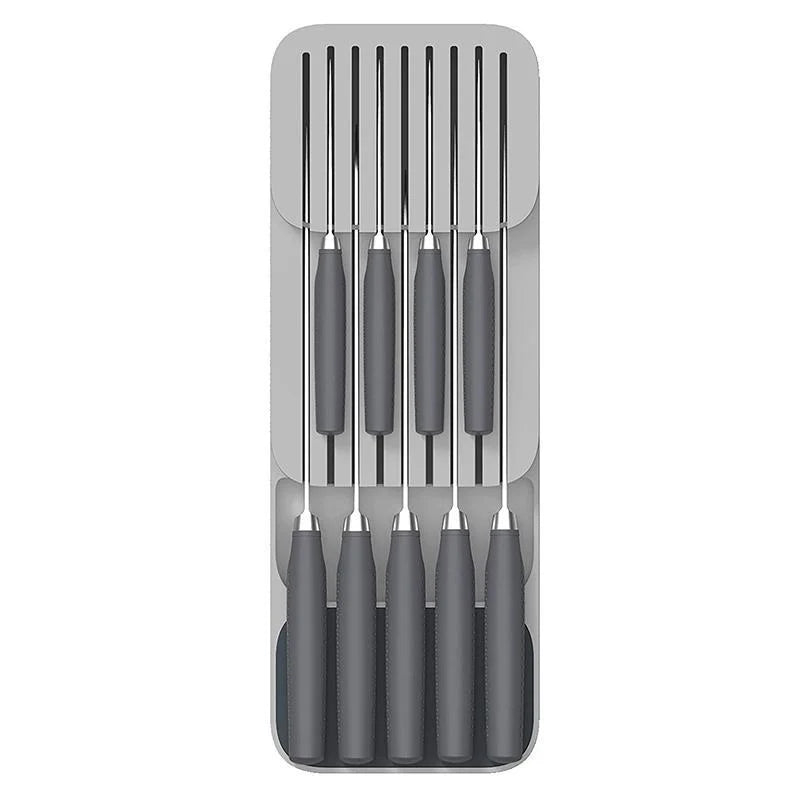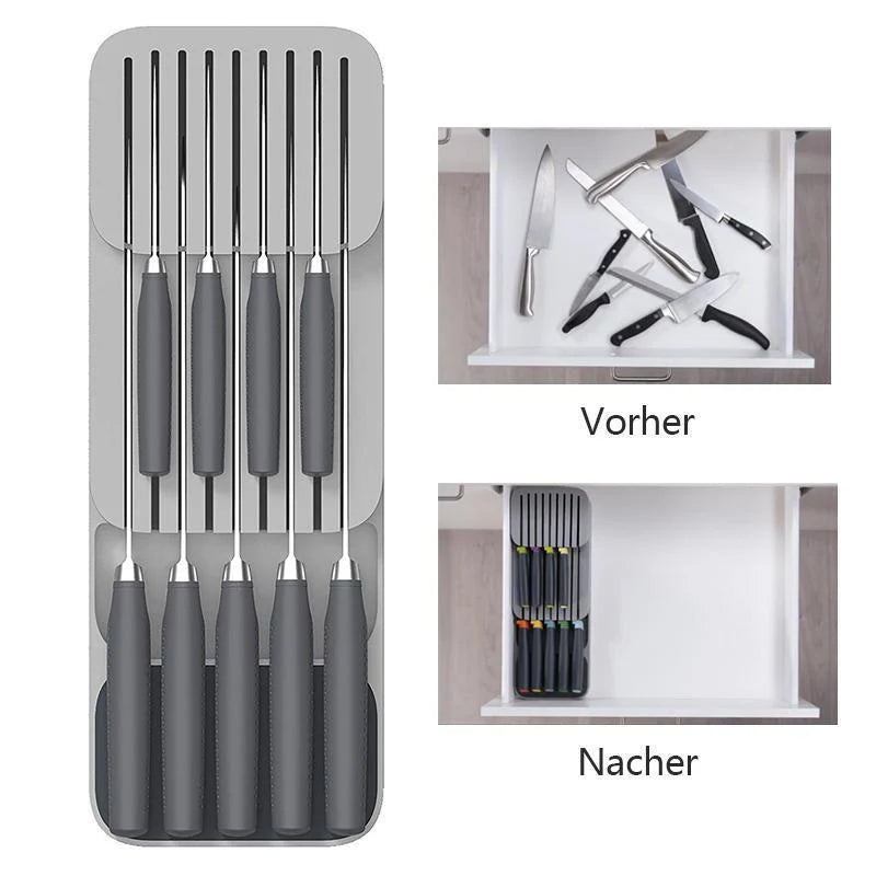 ✅ Maximale veiligheid – Voorkomt losse, gevaarlijke messen in de lade en beschermt je handen tegen snijwonden.